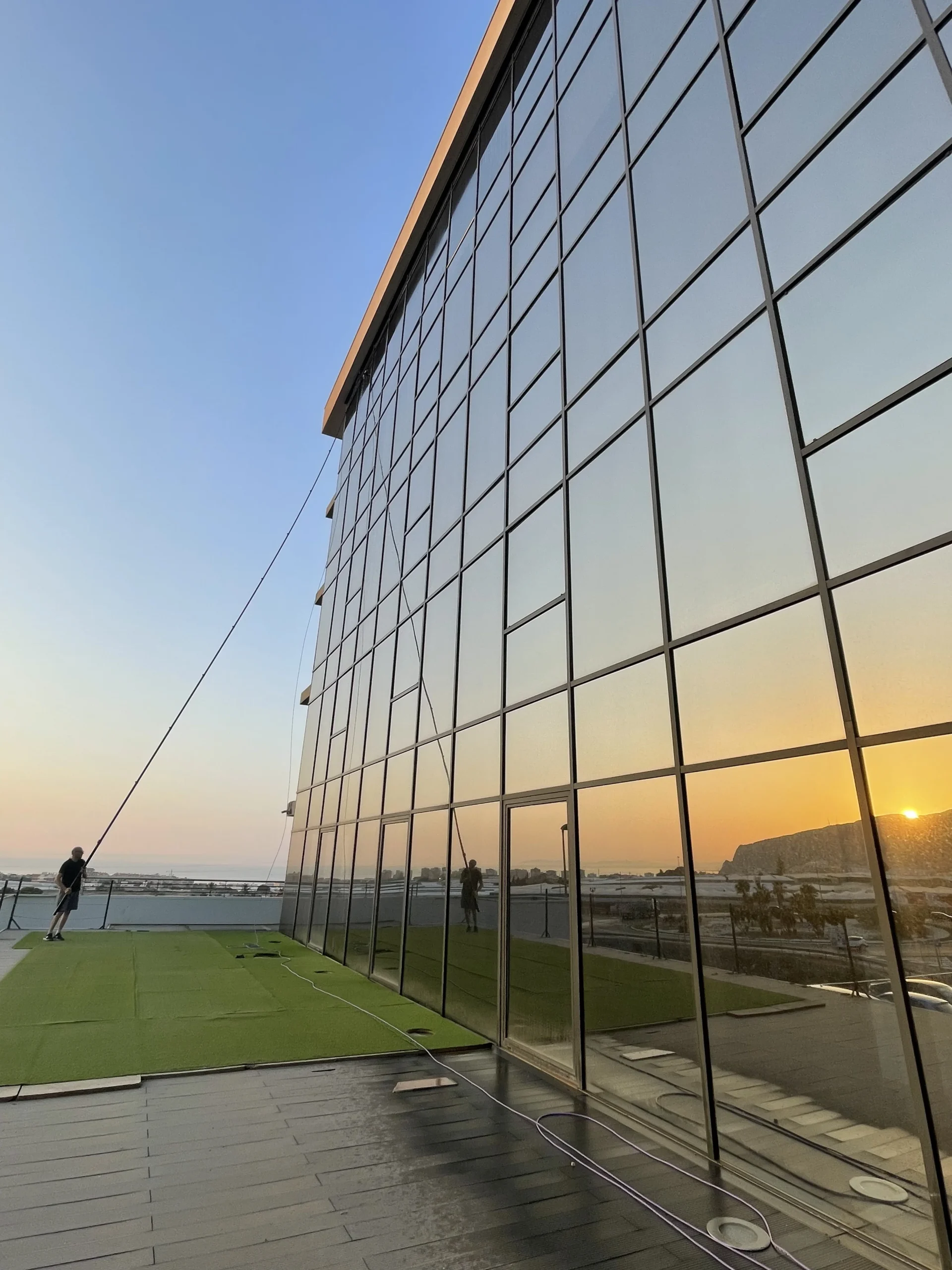 Especialistas en limpieza de cristales en altura y muros cortina, utilizando sistemas de agua pura. Priorizamos la seguridad, rapidez y transparencia.